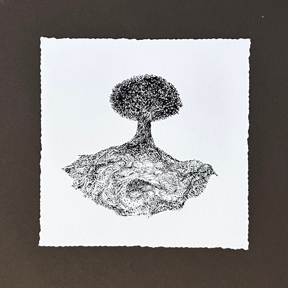 Pen brush ink drawing on Winsor & Newton Mixed Media 250gsm paper with deckle edge